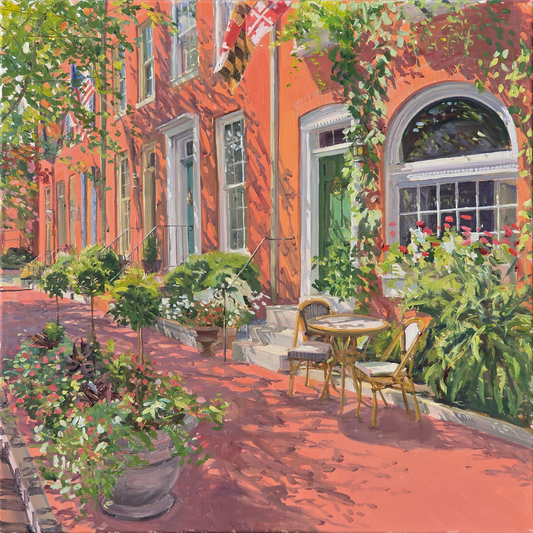 "Corner Conversation": Original painting by Crystal Moll